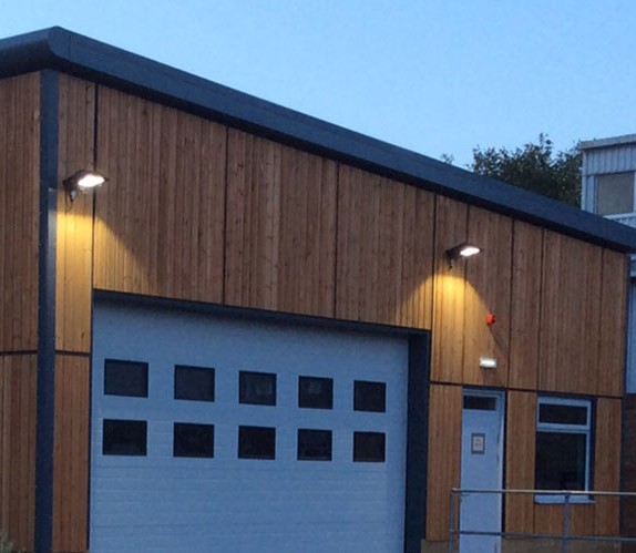 The unit’s exterior was clad with Norclad timber cladding which gave the modular office a modern yet natural finish. Access to the workshop was provided by two personnel doors and a sectional door for goods in & out. The workshop has sloped access leading towards the building.